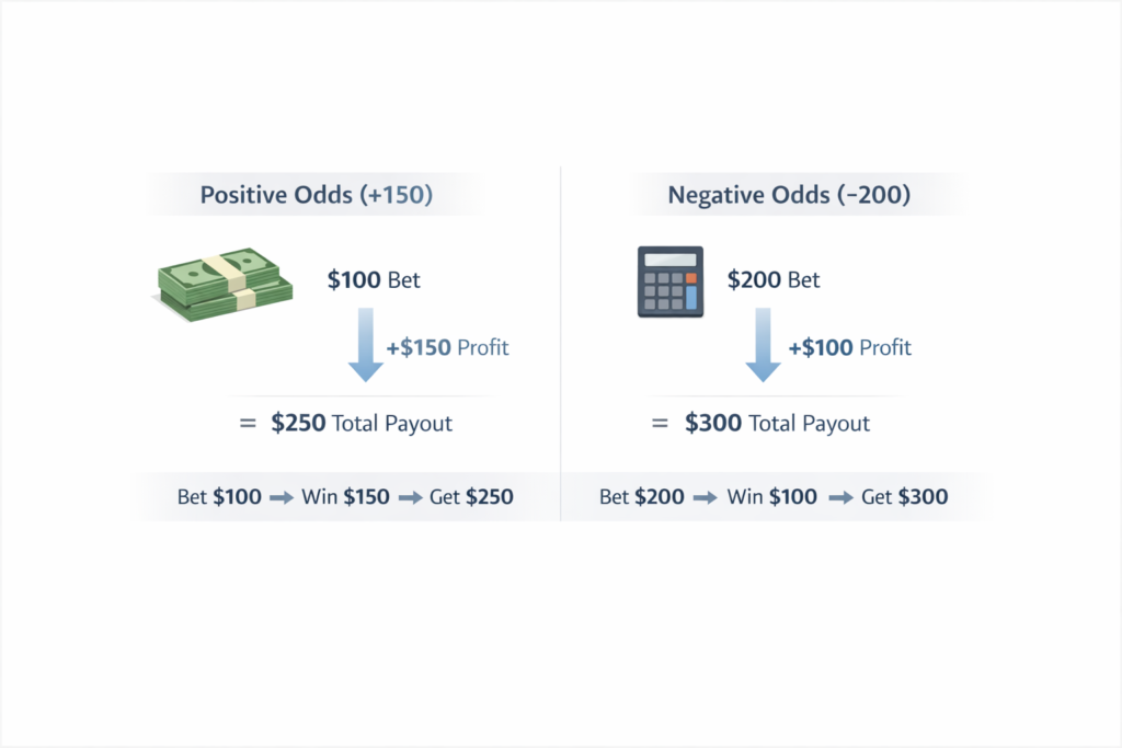 Understanding how to calculate payouts is one of the most important skills in sports betting. American odds make this easier once you know whether you’re dealing with positive (+) or negative (–) numbers. The calculation method changes slightly depending on which type of odds you’re using.