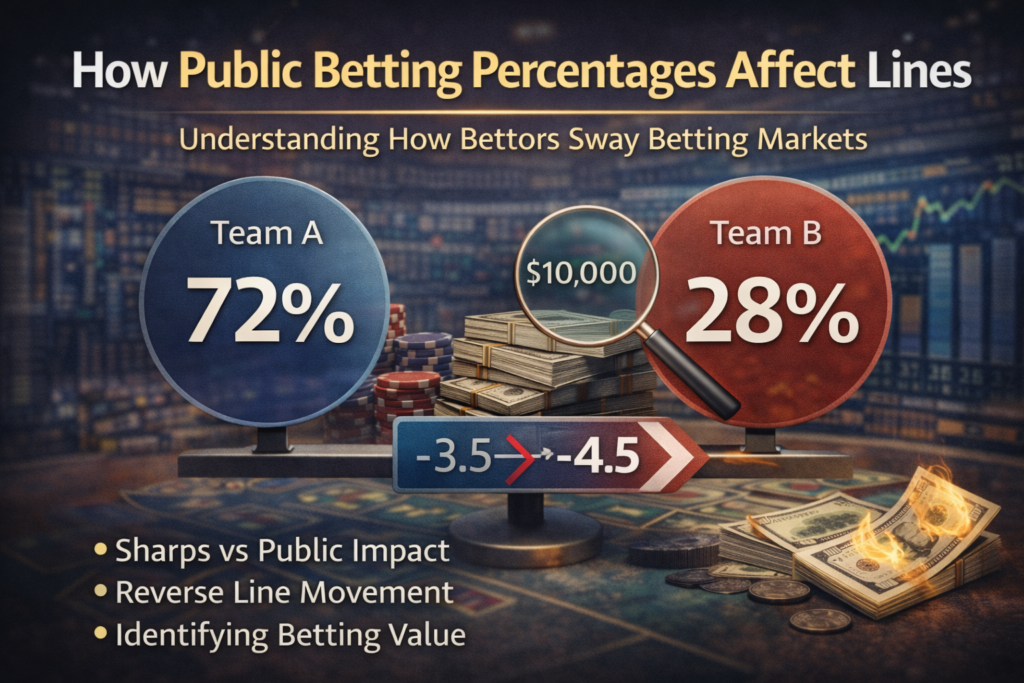 Public betting percentages influence lines but indirectly. They affect perception, liquidity, and exposure. They sometimes contribute to line movement. They occasionally create inefficiencies. But they do not independently control markets. Sportsbooks move lines primarily in response to risk management and sharp money, not public ticket counts alone. Understanding this prevents common betting mistakes and allows public data to be used intelligently rather than emotionally. Public percentages are information. They are not edge. Edge still requires probability.