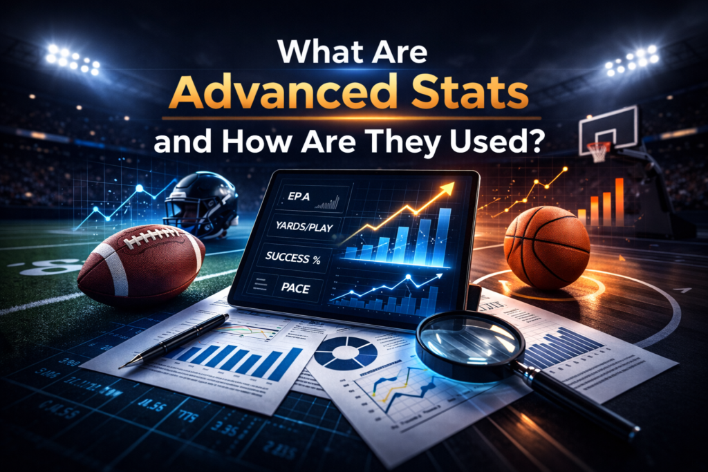 Advanced stats are data driven metrics designed to measure performance more accurately than traditional box score numbers. While traditional stats track outcomes such as points, yards, or wins, advanced statistics aim to explain how and why those outcomes occur.