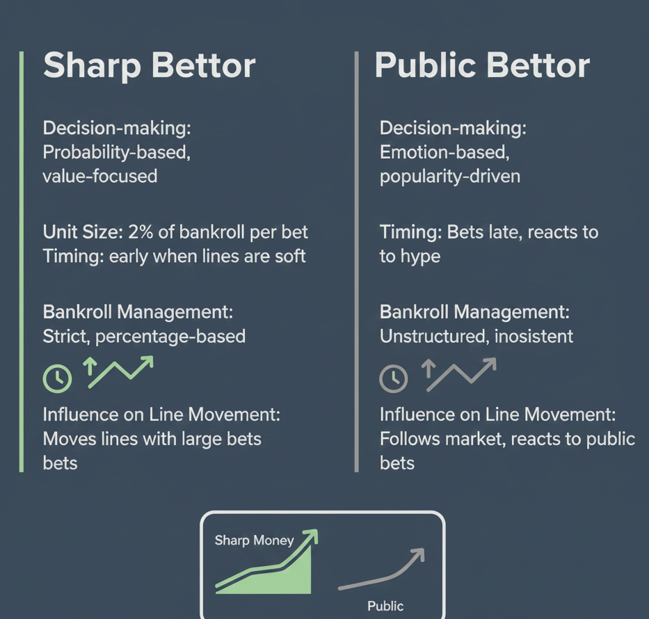 Steam moves typically occur when a sportsbook reacts to a high volume of bets on a particular side, often in a short timeframe. While casual bettors may influence line movement, most steam moves are driven by sharps bettors who consistently identify value through analysis, research, and experience. ( (What Is a Sharp Bettor vs a Public Bettor?)