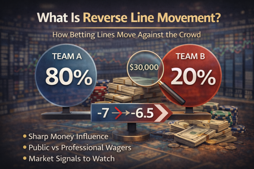 Reverse line movement (RLM) is not a betting strategy by itself. It is a market signal a clue about where influential money is landing and how sportsbooks are reacting to it.