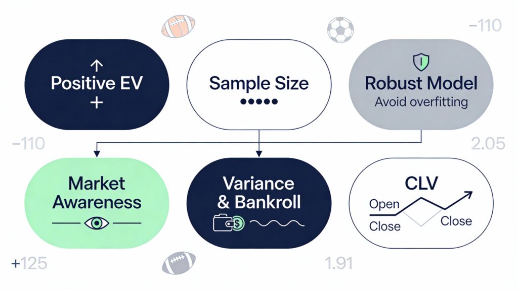 A profitable betting model is more than predictions it’s a system that identifies value, manages risk, and survives variance. Positive EV, robust design, sample size, market awareness, and adaptability are the pillars of long-term success.