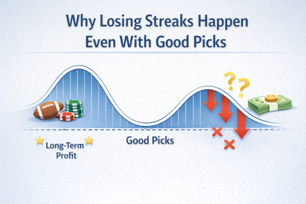 A losing streak doesn’t mean your picks were bad. It often means variance is temporarily working against you.